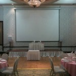 The reception room held 12 tables which would be the maximum with a dance floor. The Sweetheart table was set with the back to the windows overlooking the harbor which created a beautiful view. The DJ booth had to be adjusted to accommodate the location for the booth.